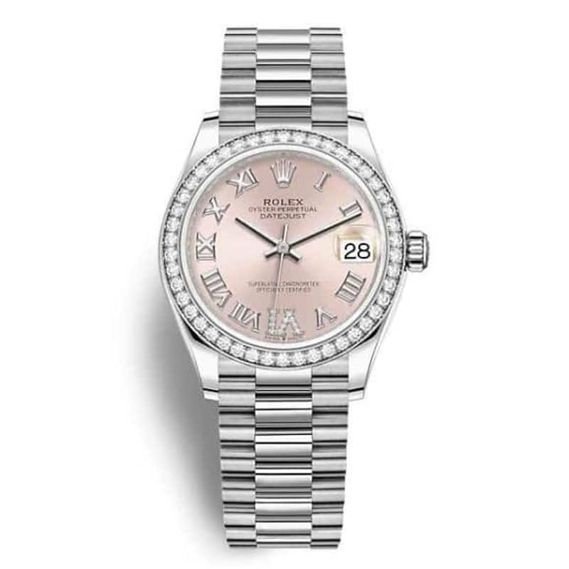 Brand Rolex Collection Datejust Model 278289RBR Gender Ladies Movement Automatic Case Size 31 MM Case Material 316 Grade Stainless Steel Bracelet Material 316 Grade Stainless Steel (President) Dial Pink set with...